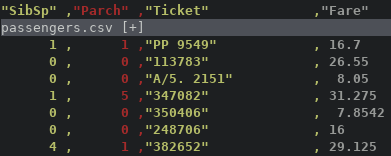 假设有以下逗号分割的CSV文件,如下图红线所示,数据列没有对齐: